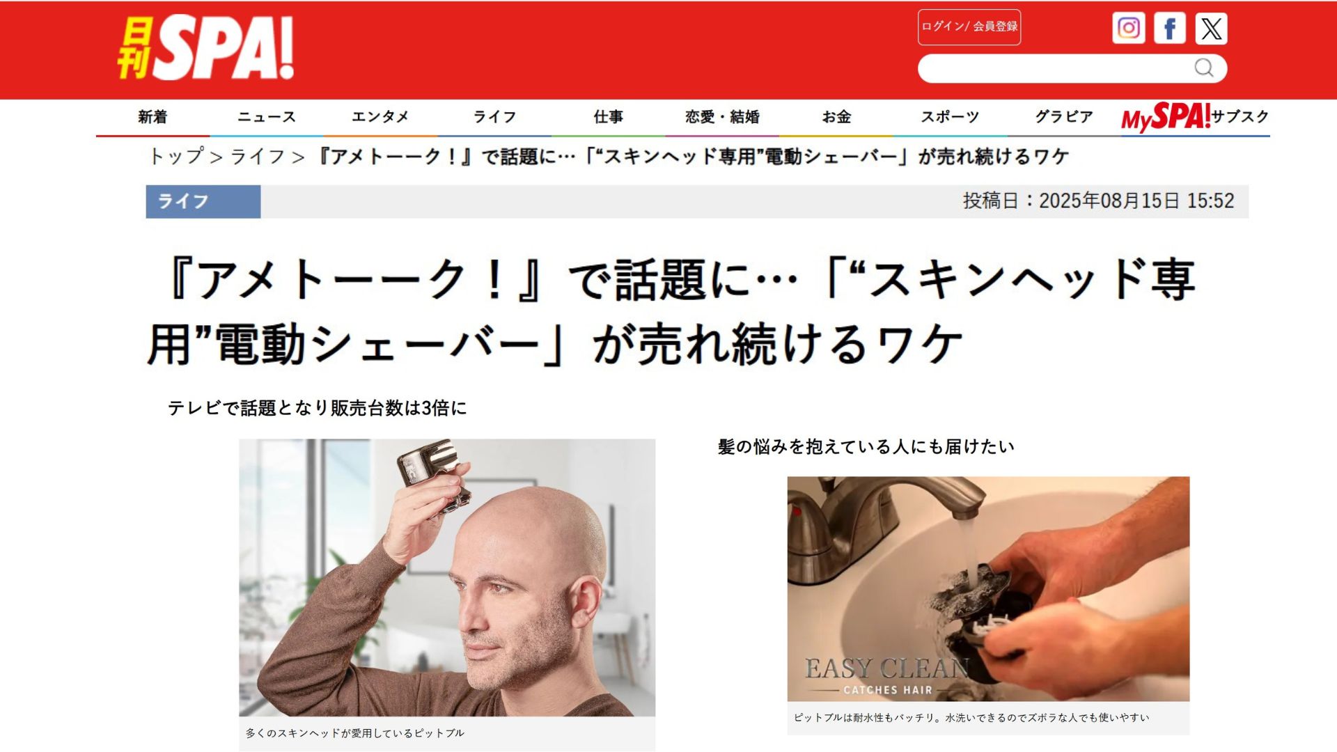 2025年8月15日の日刊SPA!に“Skull Shaver Pitbull(スカルシェーバー・ピットブル)”についての弊社代表の倉重への取材記事が掲載されました。